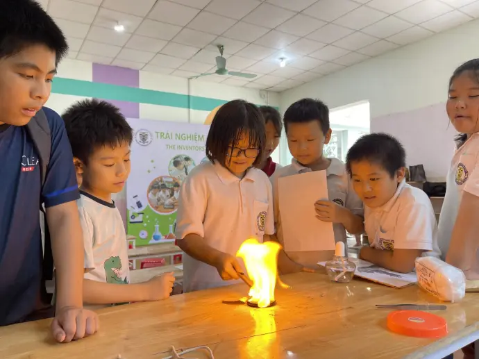 + Hoạt động trải nghiệm sáng tạo: Học sinh tham gia trình bày ý tưởng, sản phẩm mô hình STEM, ứng dụng công nghệ trong học tập.